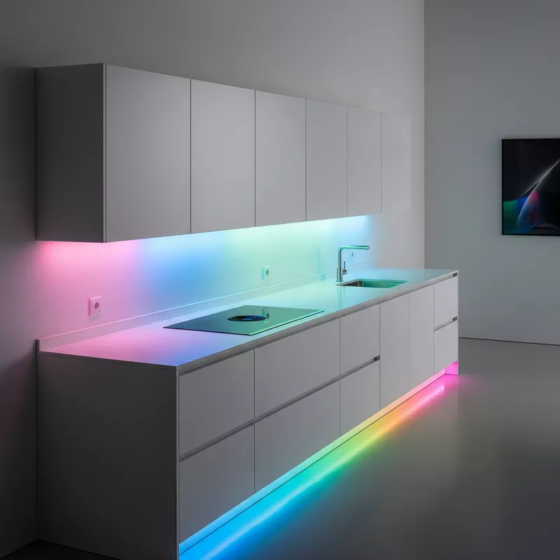 Lampu LED strip RGB untuk dapur minimalis - White Tunable LED Strip: Dapat diatur warnanya dari warm white ke cool white. Cocok untuk menyesuaikan suasana pencahayaan sesuai kebutuhan.