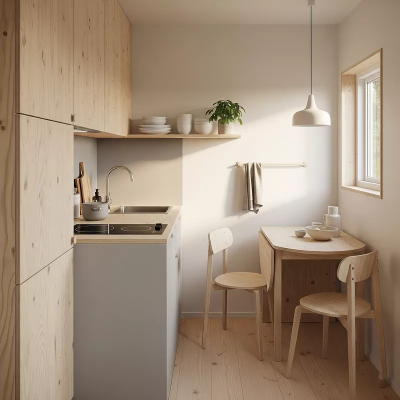 Dapur minimalis Skandinavia dapat diaplikasikan di berbagai ruang, termasuk: